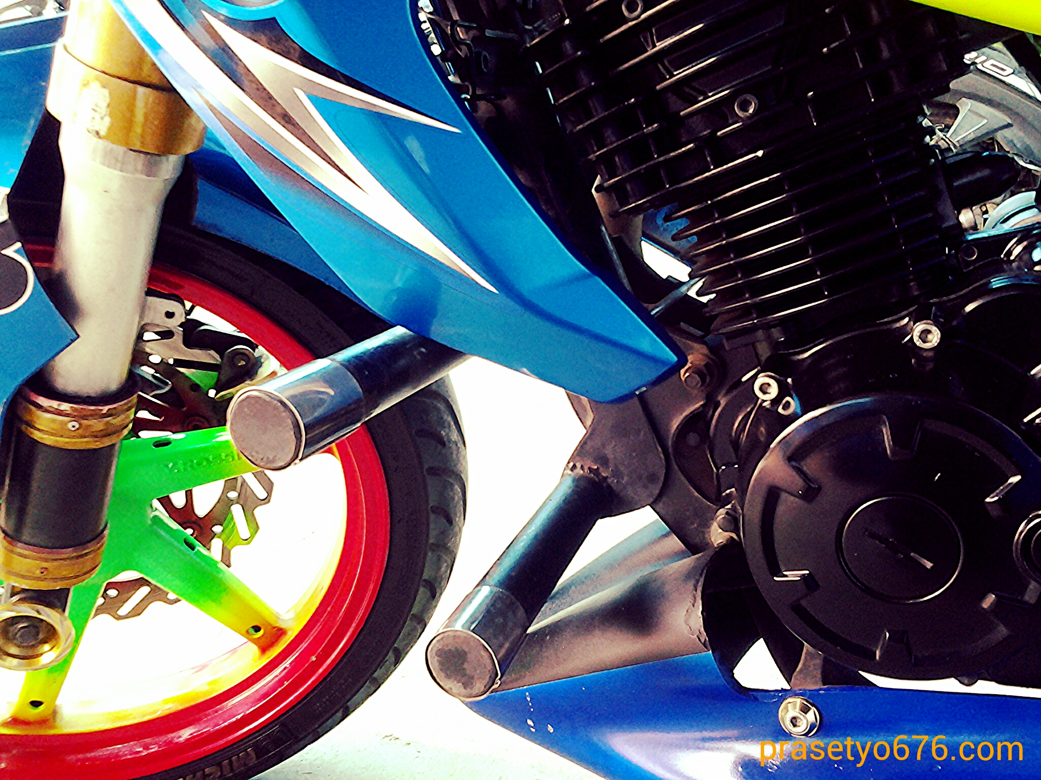 Pada areal rangka down tube, ditambah besi pipa yg berfungsi sebagai engine guard. Selain itu, ditambah juga aksesoris under cowl pada bagian bawah mesin.
