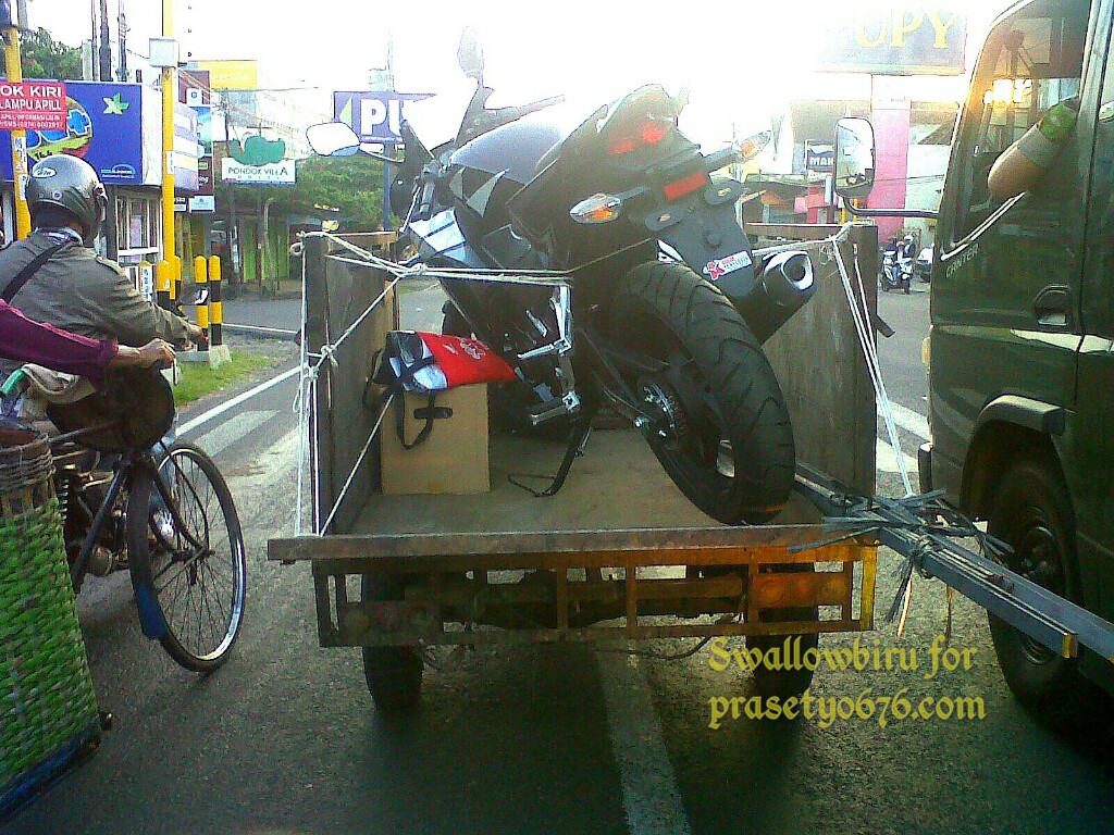 Apa yang Anda Pikirkan Ketika Melihat Foto ini? Sebuah Honda CBR 150R Gress diangkut Motor Roda Tiga Lusuh Juni 10, 2015