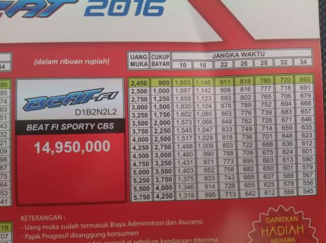 Untuk harga jual BeAT FI Sporty CW akan dilepas seharga Rp. 14,75 jt. Sedangkan BeAT FI Sporty CBS dijual seharga Rp. 14,95 jt dan untuk tipe BeAT FI Sporty CBS ISS dilepas dengan harga Rp. 15,45 jt.