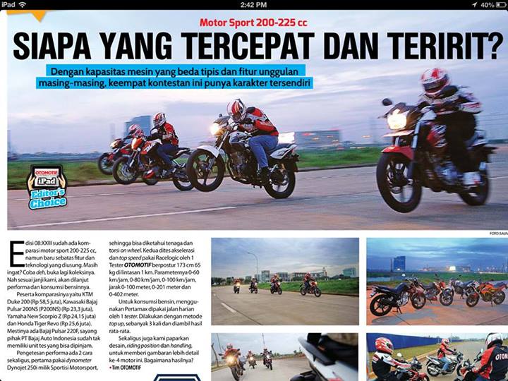 Kawasaki Bajaj Pulsar 200 NS diadu lawan KTM Duke 200, Honda Tiger Revolution, dan Yamaha New Scorpio Z.