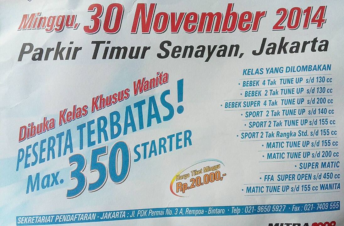 Pada event drag bike ini, terdapat beberapa kelas yg dilombakan, yaitu :