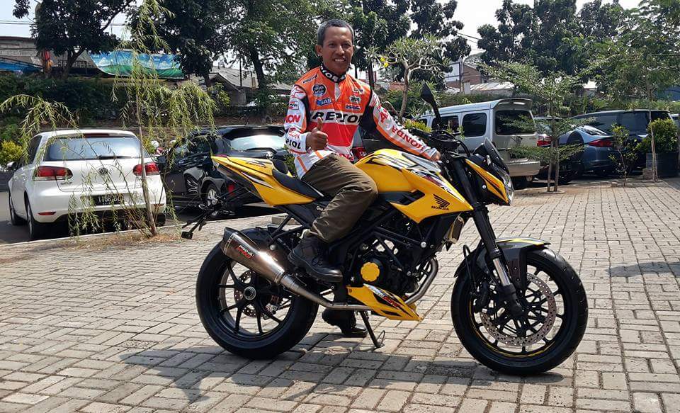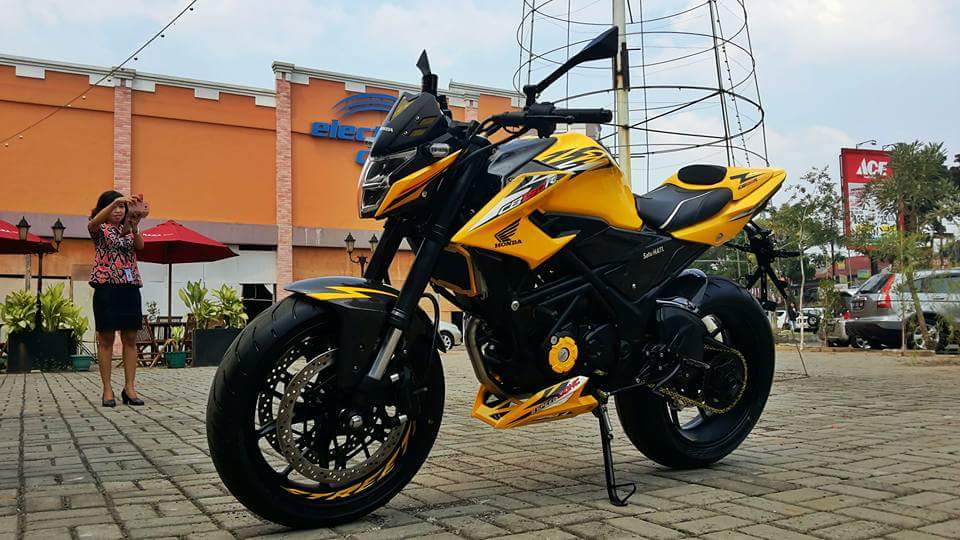 Setelah menjalani ubahan tersebut, tentu membuat sang CB150R sangat eye-catching. Apalagi laburan cat berwarna kuning ngejrengĀ semakin membuatnya menjadi pusat perhatian.