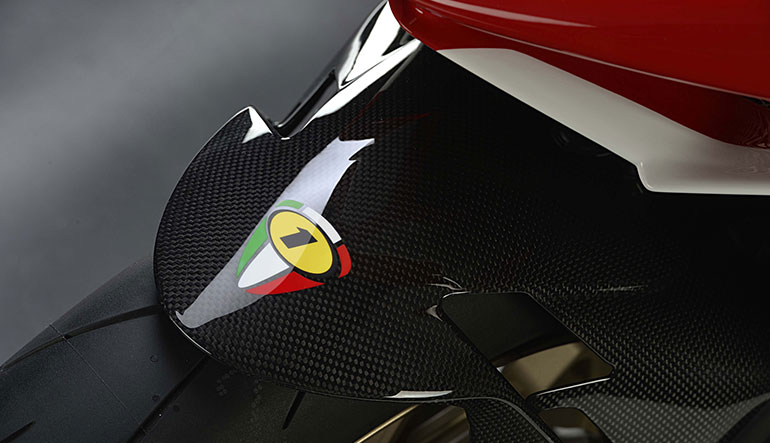 Bagian fender depan dan belakang menggunakan bahan carbon fiber yg ringan namun kuat. Selain itu, bagian velg juga menggunakan tipe forged yg membuat bobotnya lebih ringan, menurut klaim MV Agusta bisa memangkas 4.5 pound dibanding F3 standard.