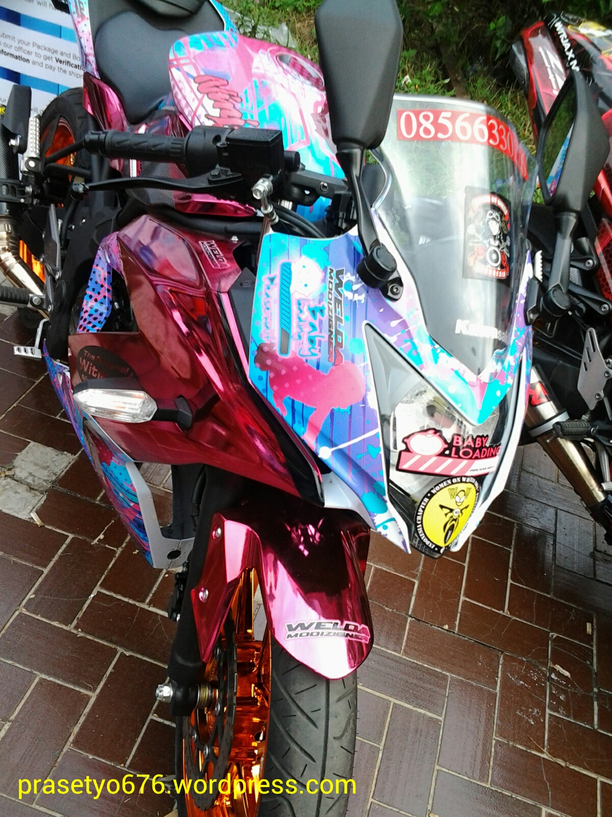 Selanjutnya, berikut ini adalah foto-foto Kawasaki Ninja 250RR Mono yg sudah menjalani ubahan warna menggunakan sticker.