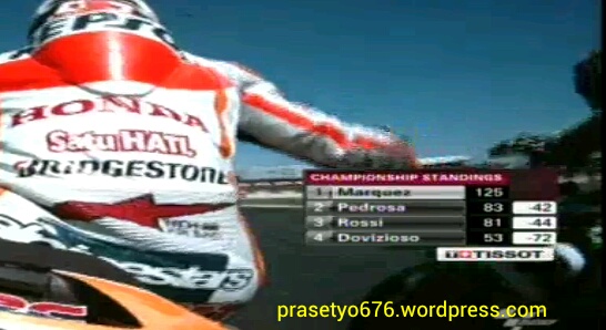 Apalagi kondisi rival beratnya yg akan menjalani start pada urutan tengah. Liat saja Dani Pedrosa yg merupakan rekan setim tetapi juga rival terdekat dalam perolehan point, hanya mampu bertengger di posisi start ke 9.