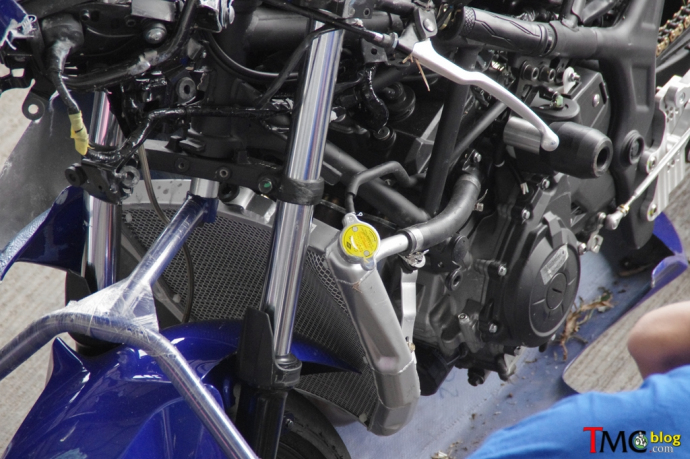 Seperti dapat dilihat pada foto yg bersumber dari mas Taufik tmcblog.com, terlihat radiator dengan ukuran besar yg memenuhi area depan mesin sang twin cylinders 250 cc andalan Yamaha ini.